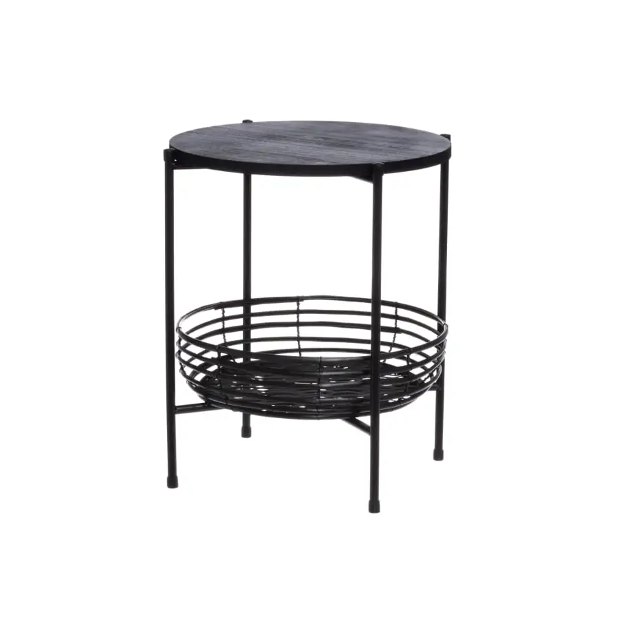 Stylish and practical small table for many spaces and uses. There is a convenient seprate wicker basket under the table. The leg is foldable, so table is easy to store in a small space if necessary. Maximum load: the desk top 10 kg, the basket 5 kg.