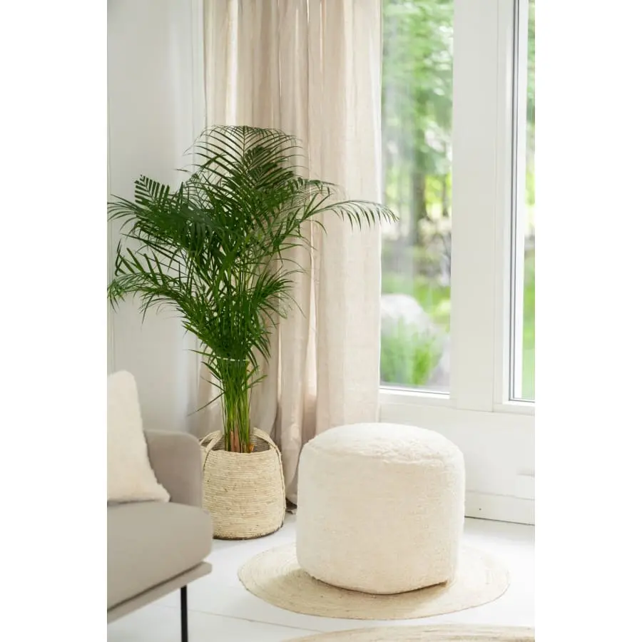 AINA Vilja is a hand-made footstool. It is suitable as an additional seat or under the legs for a sofa corner. The earthy color is suitable for many spaces.