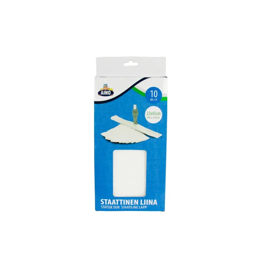 Aino static cloth is charged during use, which makes it highly efficient to collect all dust and dirt. Perfect for cleaning different surfaces by itself, but can also be attached to a mop. This product has multiple uses, such as cleaning floors, ceilings and walls. The product is disposable.