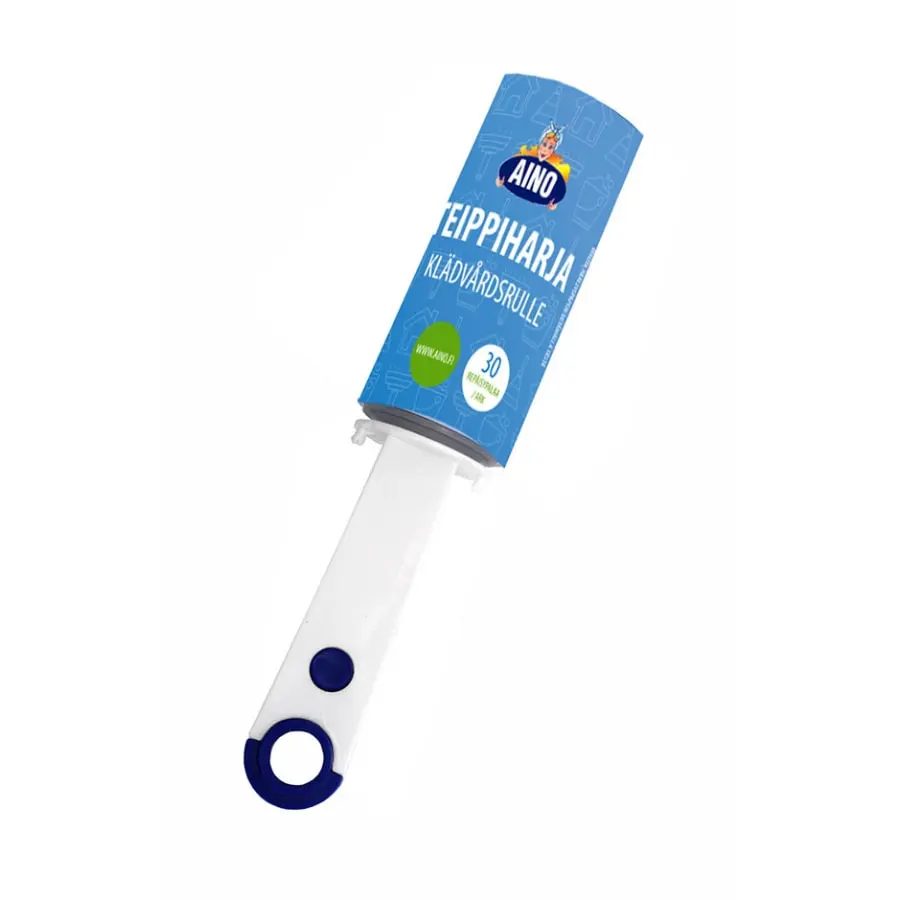Aino Lint Roller cleans pet hair and lint from home textiles, such as furniture and clothes. Sticky rolls can be bought seperately. Durable handle with a comfortable design. Directions for use: Remove the paper on top of the roller and roll the wanted destination until clean. After use, remove the dirty piece of tape so that the roller is ready for next use. When all tapes are used, change the previous roll into a new one.