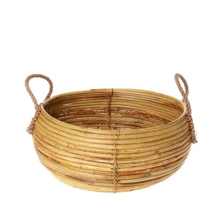 Multipurpose sturdy rattan basket with handles made of jute braid. Diameter: 43cm, Height: 20cm