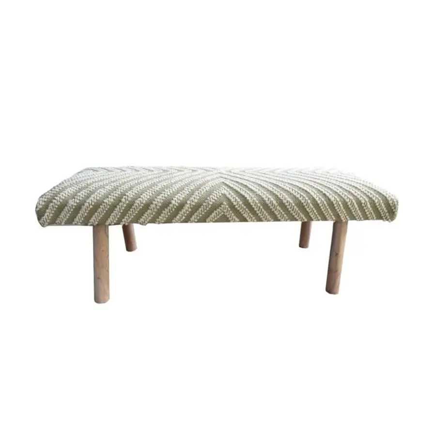 En robust bänk med lätt bomullsöverdrag och träben. Storlek 120 x 45 x 40 cm.