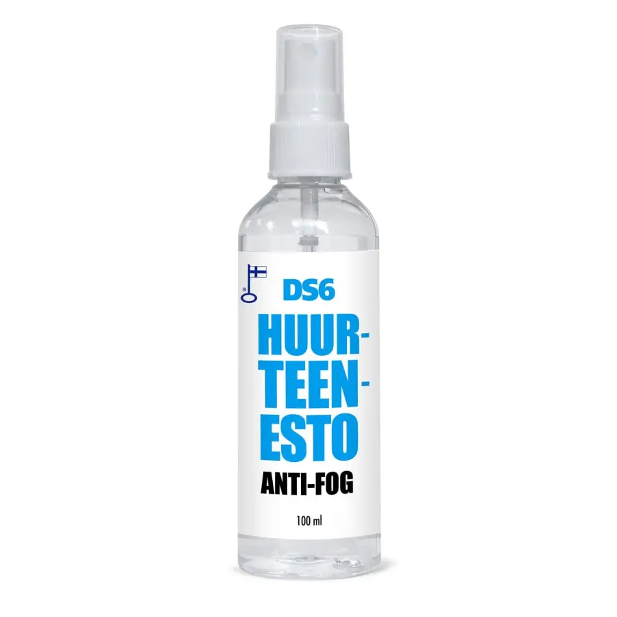 Anti-fog agent for glasses, swimming goggles, visors, goggles, mirrors, glass surfaces. Leaves an anti-fogging film on surfaces. Alcohol-free and silicone-free.