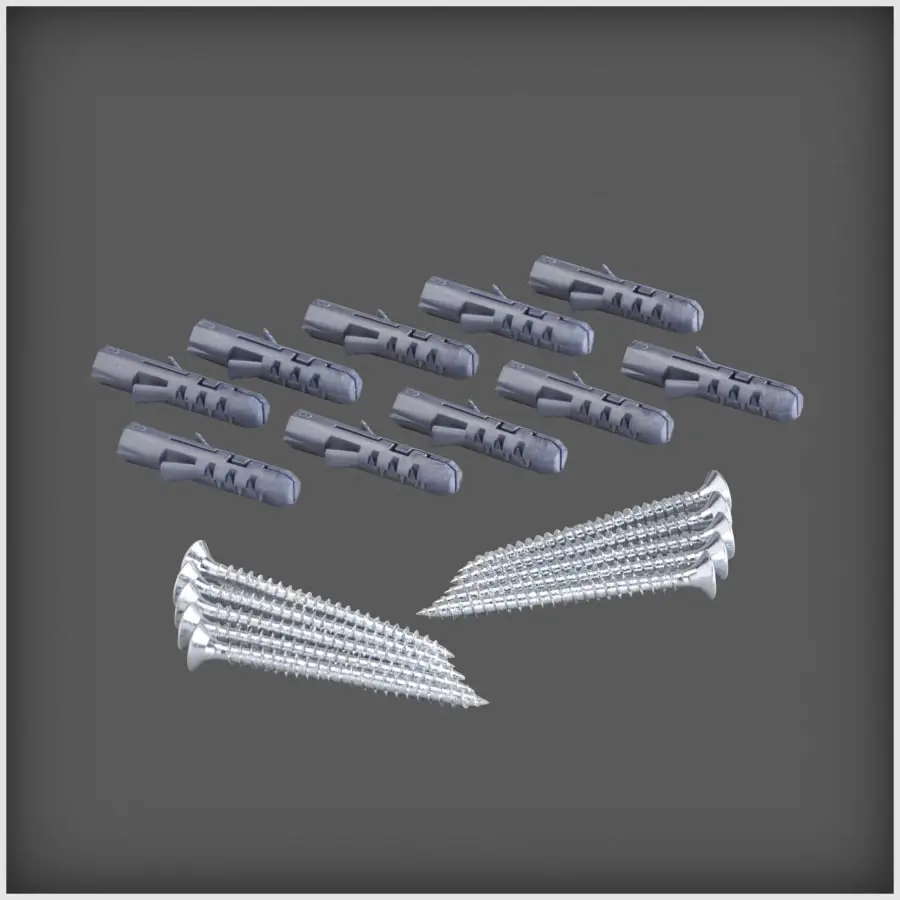 Elfa’s carrier rail is firmly attached to concrete, brick and wooden walls using Elfa’s wall screws. TFX screw. Size 4.8 x 64 mm. 10 screws in the package. Material steel.