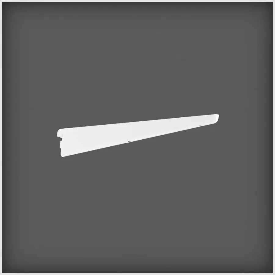 The bracket for the Elfa record shelf is suitable as a bracket for melamine shelves. A hole in the bracket for a clothesline holder. Available in eight different depths. The color is white. The material is flame-painted steel.