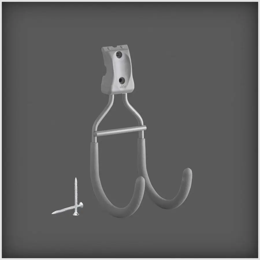 The Elfa rounded hook is easily installed on a storage rail or with screws directly on the wall. Suitable for e.g. for storing water hoses or cables. Hook width 102 mm, depth 142 mm, height 252 mm. Color: Grey. Material steel/plastic.