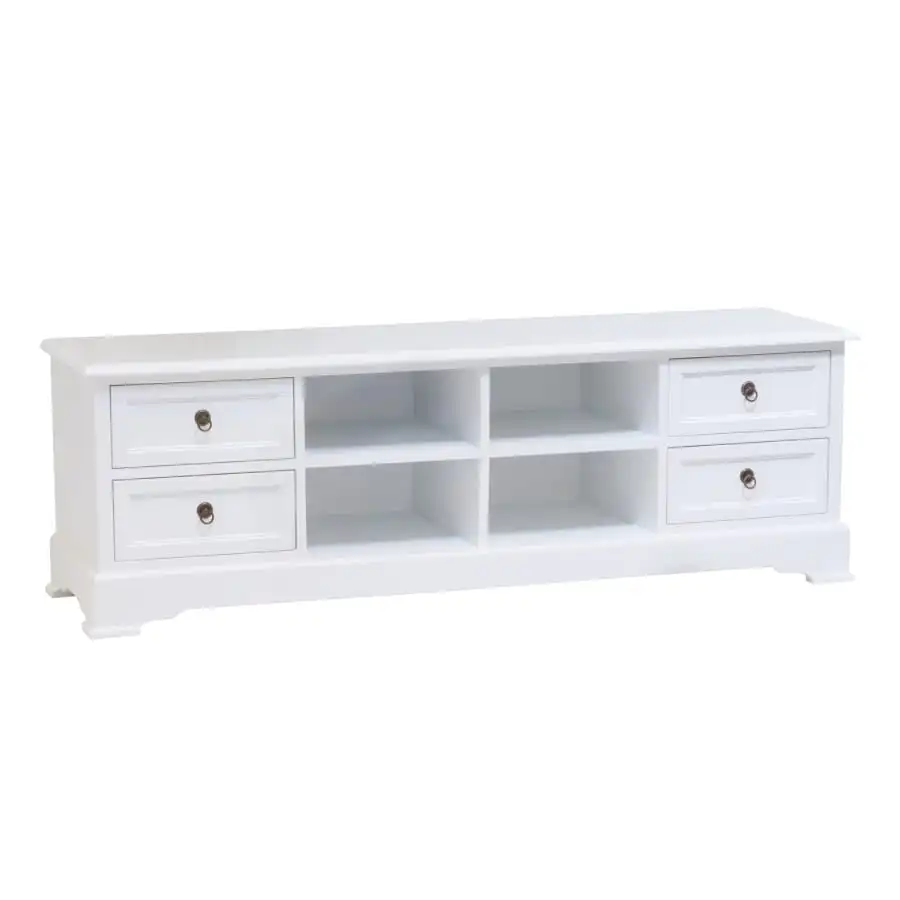 Sturdy Claudia TV stand. Material: birch/mdf. Inside dimensions of the box: L33 x W33.5 x H13.5 cm. Compartment dimensions: L36 x D42 x H16 cm. Metal pulls. Delivered pre-assembled.