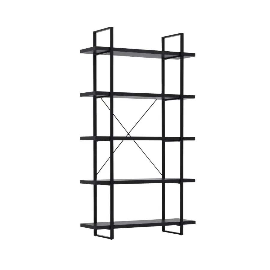 Stabil och linjär Tokyo-hylla med fem hyllplan. Hyllorna är gjorda av pappersbelagd mdf-skiva och deras tjocklek är 3 cm. Ramen är av metall och ramens bredd är 2,7 cm. Hyllutrymmet är 34,5 cm och bärförmågan på hyllbrädan är 10 kg. Hyllan är 100 cm bred, 33 cm djup och 179 cm hög. Leverans i delar