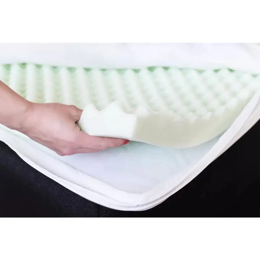 The Familon Memory mattress, which molds itself according to heat and weight, offers your sleep a wonderful feeling of weightlessness and reduces the feeling of numbness and tossing and turning during the night. The stable and ergonomic memory foam padding supports bodies of different shapes and weights and is an ideal choice for those suffering from back problems, even the most sensitive. The Memory mattress, which offers a wonderful feeling of weightlessness, reduces surface pressure, the feeling of numbness and turning during sleep. You can choose the soft profiled side or the smooth and firm side of the reversible mattress topper that suits you best. The Memory mattress, which is also suitable for sensitive people, has an Allergy ID issued by the Allergy, Skin and Asthma Association.