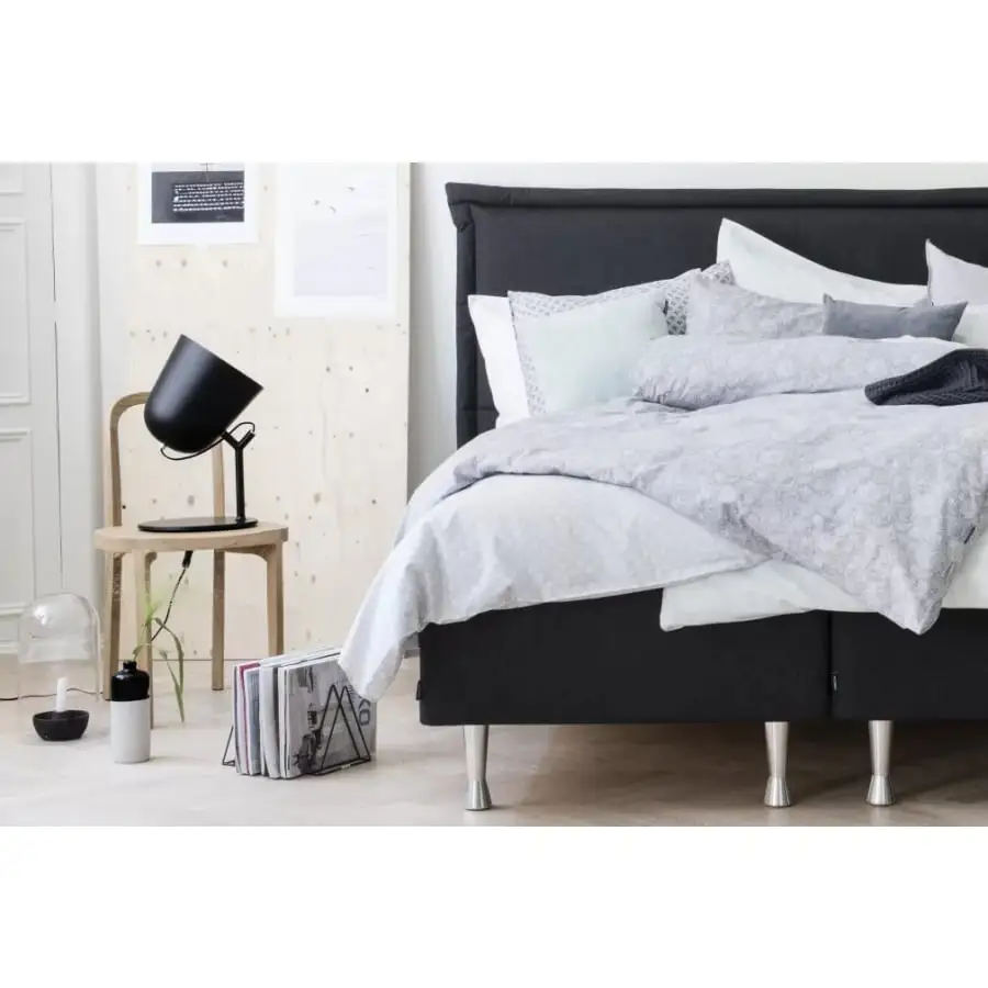 Familon Zone sänggavel ger plysch mysighet till ditt sovrum. Den tidlösa, grå sänggaveln och dess snygga sömmar passar in i många typer av interiörer och avslutar bäddsetet med stil. En mjuk stoppad sänggavel skapar behaglig akustik i sovrummet. Sänggaveln, som står mellan sängen och väggen av sin egen tyngd, behöver inte fästas i sängen eller väggen.