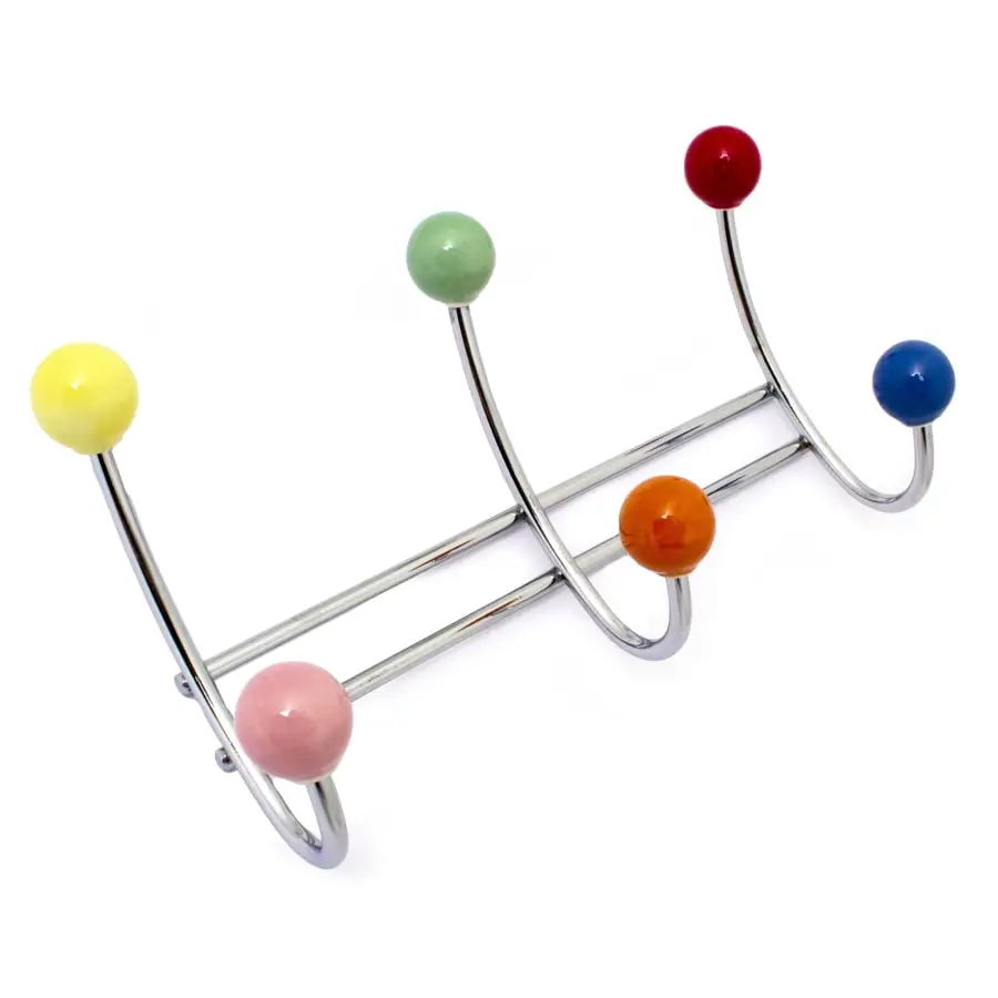Clothes rack made of chromed steel with multicolored porcelain knobs