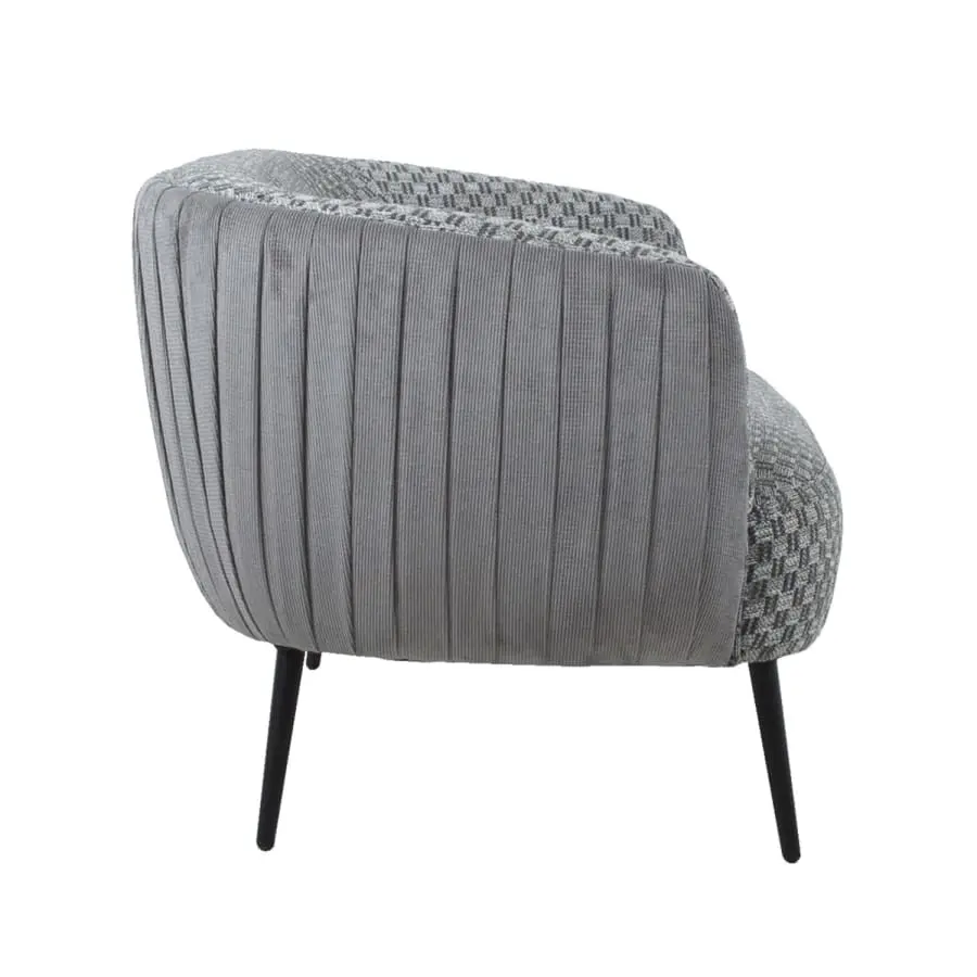 Sofa Accent with a stylish gray texture. The frame of the sofa is made of wood and plywood. Pocket suspension in the seat. Upholstery material gray 100% polyester fabric. Padding polyurethane foam. Metal legs.