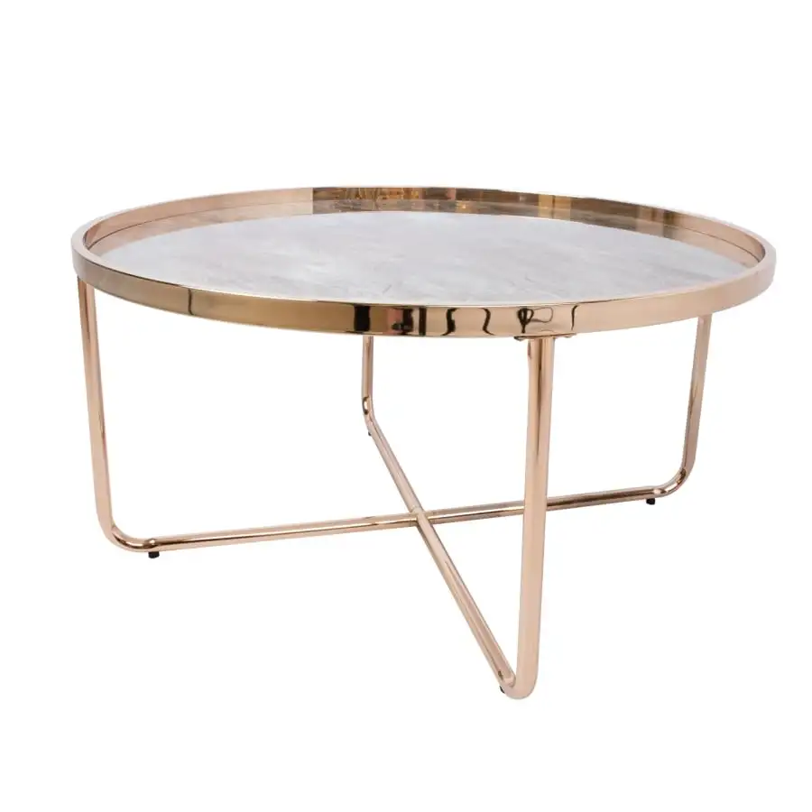 Coffee table ASTOR gold. A stylish and convenient coffee table helps every day and also makes it easier to entertain guests at home. The table top is made of 5 mm thick tempered glass with a luxurious marble pattern. The steel legs of the table are finished in an elegant golden tone. The dimensions of the coffee table are 80 x 40 cm.