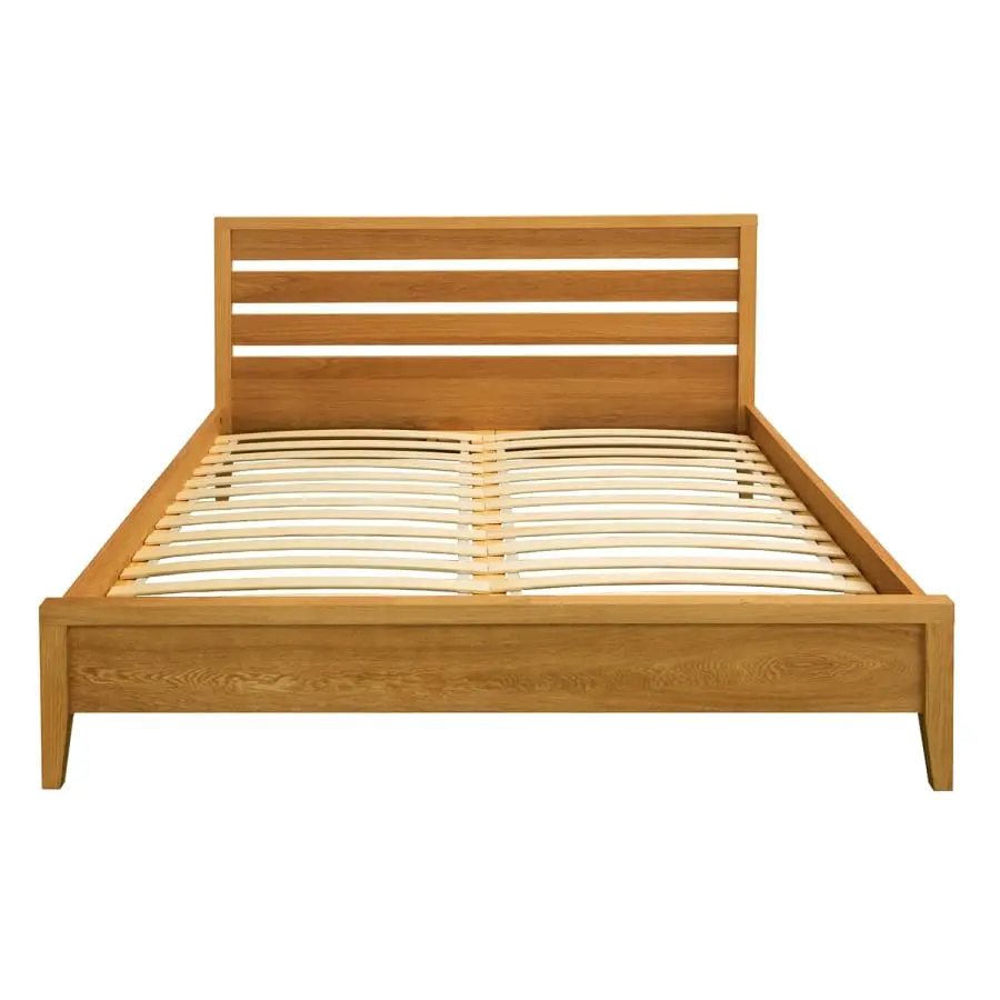 Bed Chamba 160×190 in beautiful oak veneer. The frame and end are made of oak veneer MDF. The whole includes the bottom grid of the bed. The set does not include a mattress.