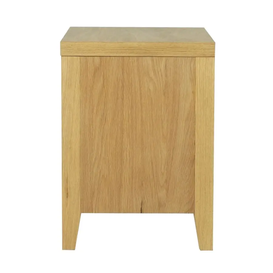 Liten Nattduksbord Chamba. Stomme av MDF-skiva och klädd med naturlig ekfaner. Lådan är gjord av ekplywood.