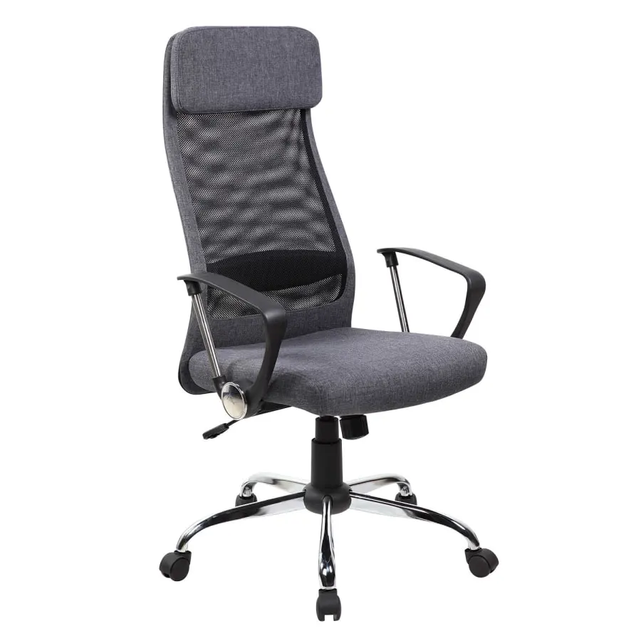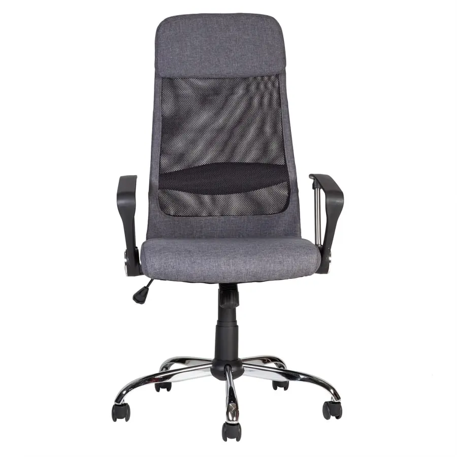 Adjustable office chair Darla. Rocking mechanism, seat height adjustable with gas spring. Foot grid chromed metal. Armrests chromed metal and black plastic. Seat and backrest made of polyester fabric and polyester mesh fabric.