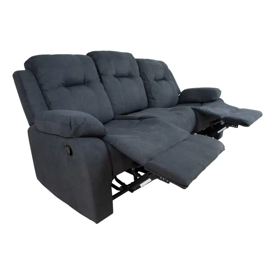 The position of the backrest and footrest can be changed manually. When the footrest rises, the backrest moves smoothly to the resting position. The middle seat cannot be adjusted. Cover material: 100% polyester. Frame and suspension: plywood/metal. Zig-zag and pocket springs. Upholstery: polyurethane foam 28 kg/m³, dacron.