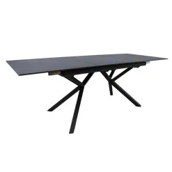 Dining table EDDY 160/220x90xH76cm, grey. The table can be extended from the middle. The sides of the table top move on metal rails, the extension piece is placed under the table. The tabletop made of sintered stone is made with an innovative technique that imitates the formation process of natural stone deep in the earth’s crust. Kaolin or porcelain clay particles are processed at a temperature of 1200 degrees, resulting in a material that resembles natural stone in its properties and appearance. The tabletop is thin, but very strong, withstands very high temperatures, does not absorb stains and is very easy to clean and maintain. Since no chemical binders have been used, the material is hygienic. The thickness of the table top is 12 mm. The table has black powder-coated metal legs.