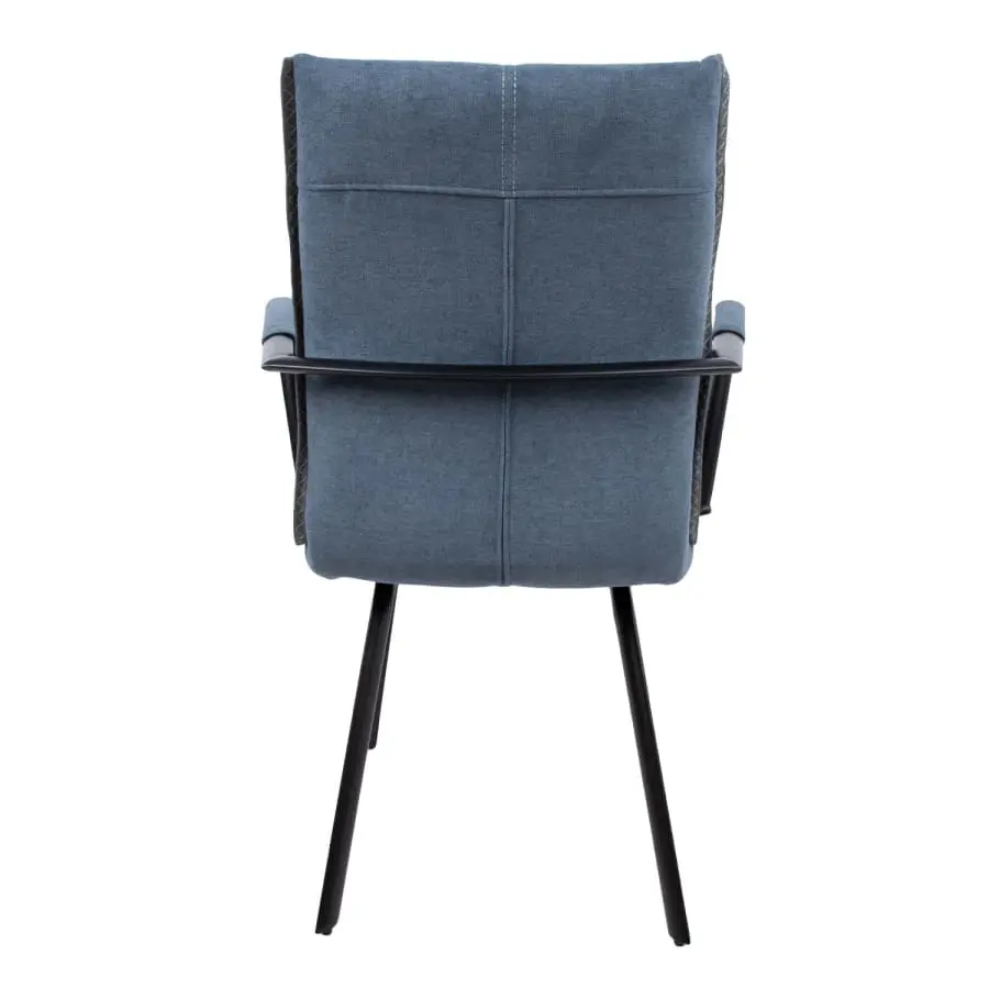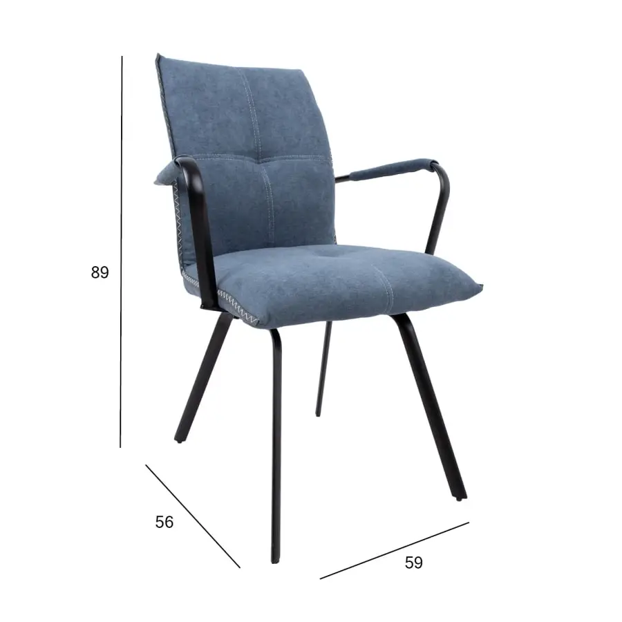 Chair EDDY with armrests 59x56xH89cm. The convenient and stylish dining chair is covered with polyester fabric. The chair has armrests and its seat is upholstered. The black metal legs are powder coated. Seat height 48cm, seat width 47cm, seat depth 45cm. Backrest height 47cm. Armrest height from the ground 68cm. Weight limit 120kg.