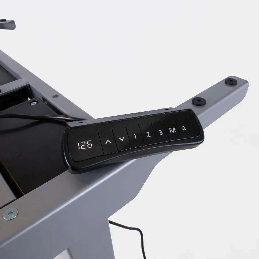 Elbord Ergo 2 140×80. Gör din arbetsmiljö bekväm och håll dig frisk! Att kunna växla mellan sittande och stående hjälper till att förebygga nack- och ryggsmärtor. Två elmotorer och ett trestegs lyftsystem garanterar snabb, mjuk och tyst (<50dB) rörelse. Maximal lyfthastighet 38 mm per sekund. Max belastning vid full hastighet 125kg. Inspänning: 100V–240V. 3 positioner kan lagras i enhetens minne.
