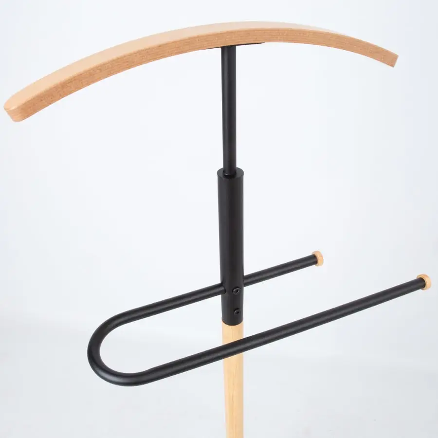 Clothes rack GLADE black. The practical rack for hanging suits is made of wood and steel. The wooden parts of the product are in a natural shade. The steel parts of the sled are coated with black powder paint.