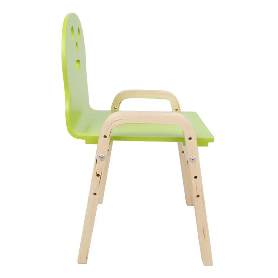 Barnstol GLAD. Stolen HAPPY växer med ditt barn! Höjden på sitsen kan ökas fyra gånger efter barnets längd – 21/25,5/30/34,5 cm. Stolens totala mått är 39x36xH46,5/51/55,5/60cm. Sittbredd 33 cm, sittdjup 31 cm, ryggstödshöjd 27 cm, armstödshöjd från marken 36 cm. Material: böjd poppelplywood med björkfanér. Sitsen är målad, benen och kroppen är målade med naturlack. Viktgräns 40 kg.