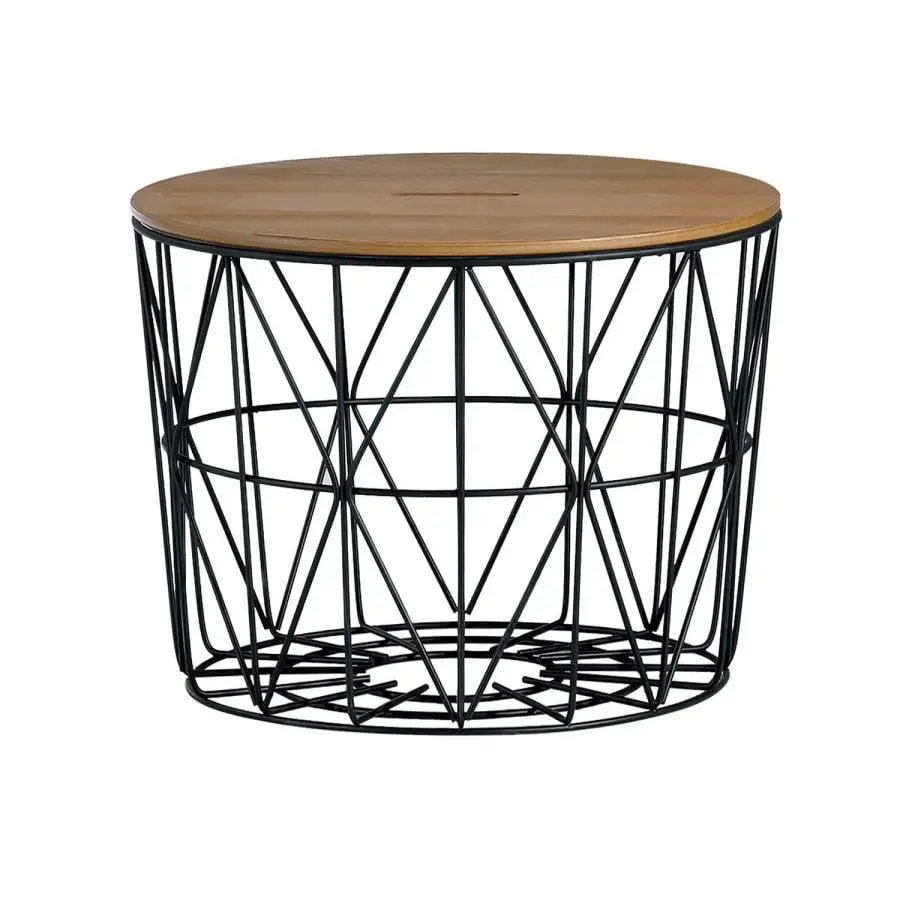A frame coffee table Helena. The table top is made of oak veneered MDF board and finished with clear varnish. Black metal frame.