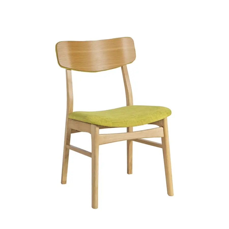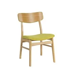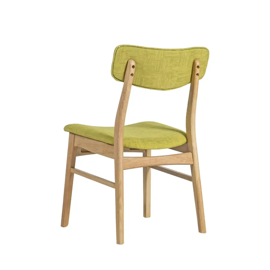 Playful Jaxton chair with a beautiful design. The legs and frame are made of rubber wood and the seat is upholstered with cheerful green polyester fabric.