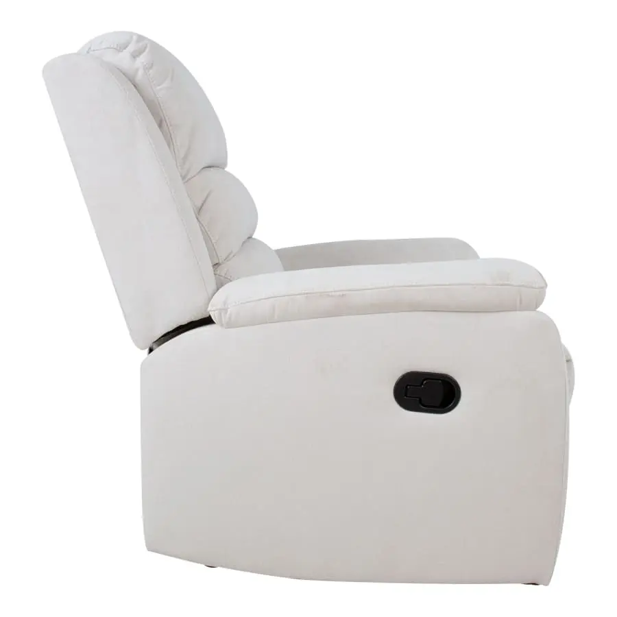 Wonderfully plush Manuel mechanism chair. The position of the seat back and footrest can be changed with a manual mechanism. When the footrest rises, the backrest moves smoothly to the rest position. Frame made of wood and metal. Padding polyurethane foam 24kg/m³ and upholstery 100% polyester.