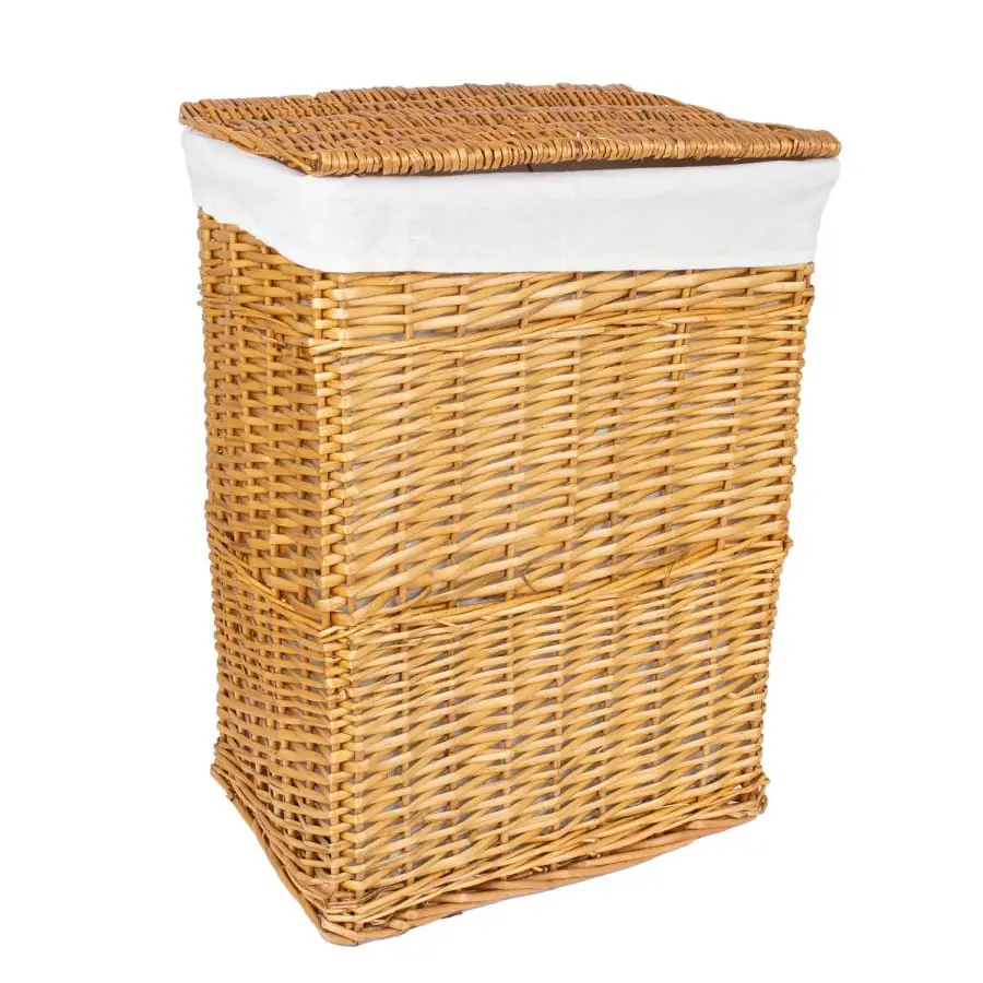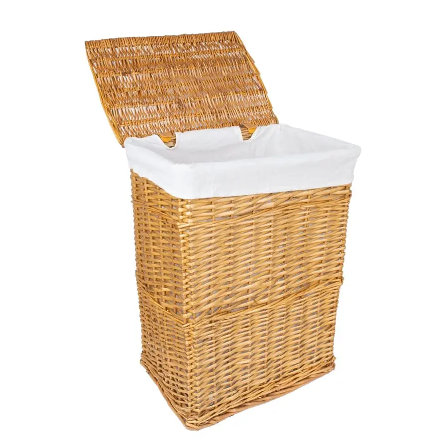 Tvättkorg MAX 45x33xH59cm, vävd, färg: ljusbrun, med tyg. Korgmaterial: färgad massiv pil, tyg: slät tyg.
