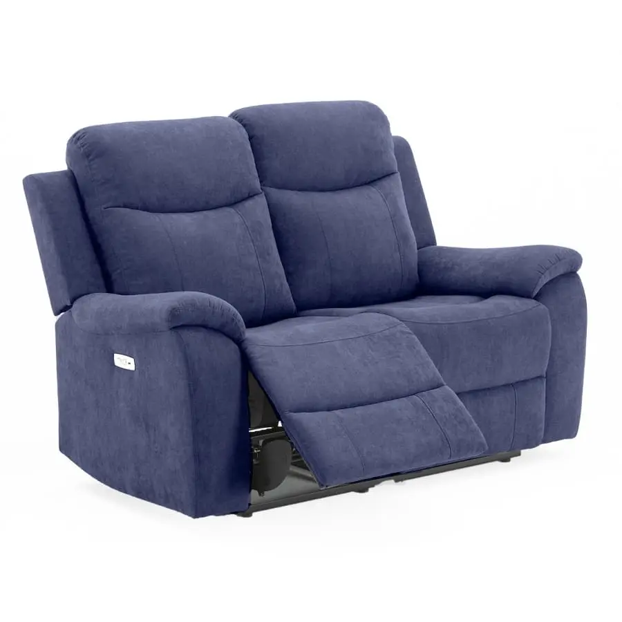 Recliner sofa Milo 2 seater. The position of the backrest and footrest of both seats of the recliner type sofa can be changed with the help of an electric mechanism. When the footrest rises, the backrest smoothly moves to the reclining position. Frame made of wood, plywood and metal. Zig-zag and pocket suspension. Padded with polyurethane foam and upholstered in 100% polyester fabric, 15,000 Martindale.