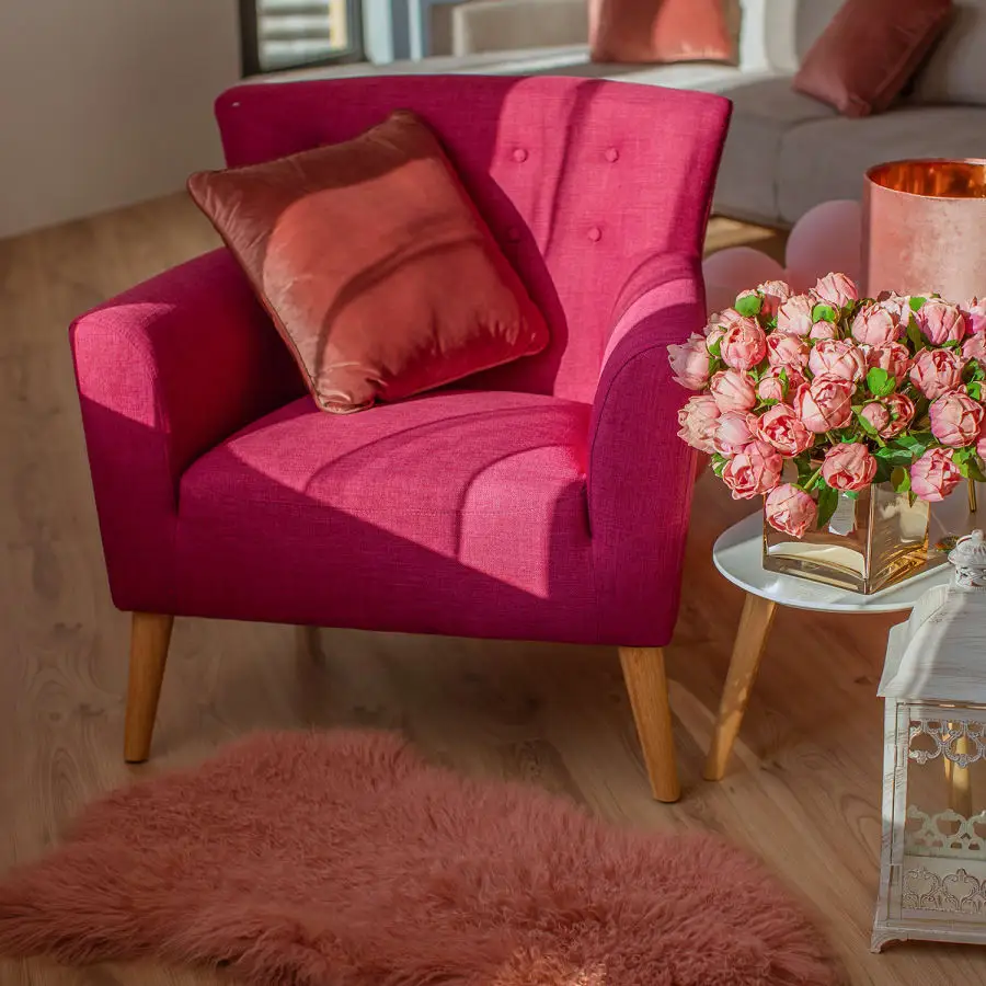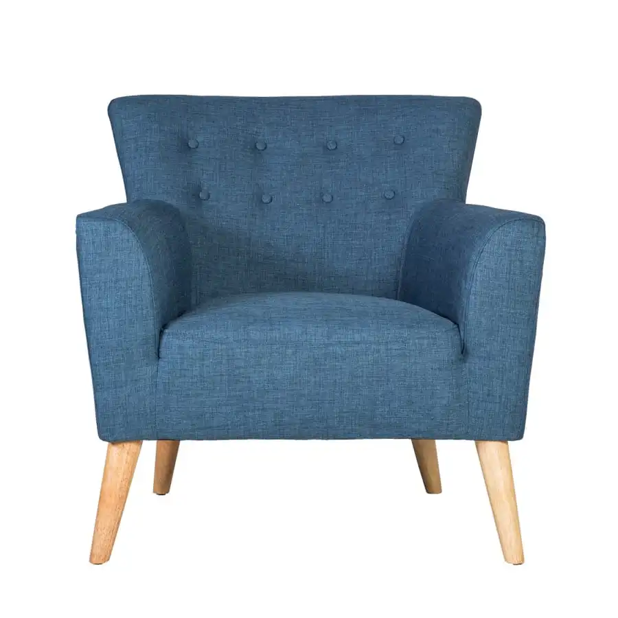 Stylish armchair Movie with a beautiful design. Frame made of solid wood and plywood. Zig-zag and Bonnell suspension. Padding polyurethane foam 24-28kg/m³ and upholstered with 100% polyester. Wooden legs.