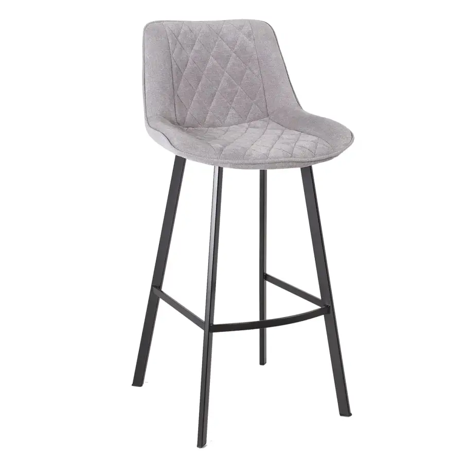 Bar stool Naomi, with padded seat. Seat part upholstered with polyester fabric. Black metal legs.