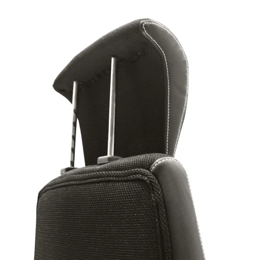 Justerbar kontorsstol Pistoia. Synkronmekanism, ryggstödets kurvatur justerbar, sitshöjd justerbar med gasfjäder. Armstöd av plast och stoppade med syntetläder, justerbara. Höjden på nackstödet är justerbart. Sits och ryggstöd i konstläder och polyesterväv. Bengaller av plast.