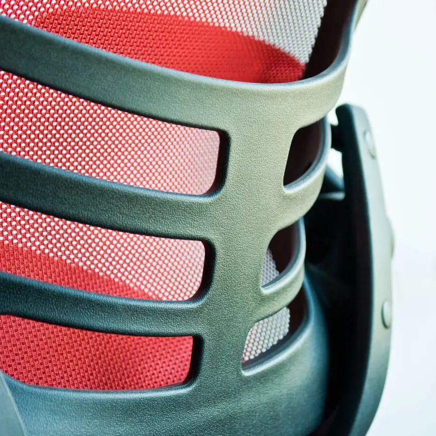 Kontorsstol Ragusa, med flera färgalternativ. Gungmekanism, sitshöjd justerbar med gasfjäder. Armstöd av plast och vadderade med polyesternättyg, möjlighet att höja. Höjden på nackstödet är justerbart. Sits och rygg i andningsbart och slitstarkt polyestermeshtyg, 30 000 Martindale. Bengaller av plast.