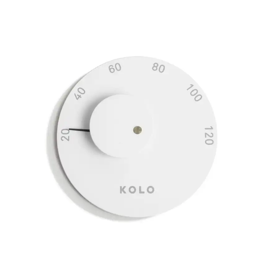 In Finnish kolo means hole and many have asked where all kolos from the KOLO-products disappear? Well behold, the answer to this world-changing question lies in the aesthetics of Mittari 2. Just kidding, no one has never really asked us that. Neither have we used waste materials from our other products when manufacturing this one, which by the way, is a simple thermometer, not some spaceship.