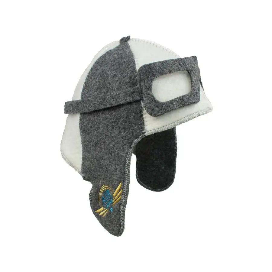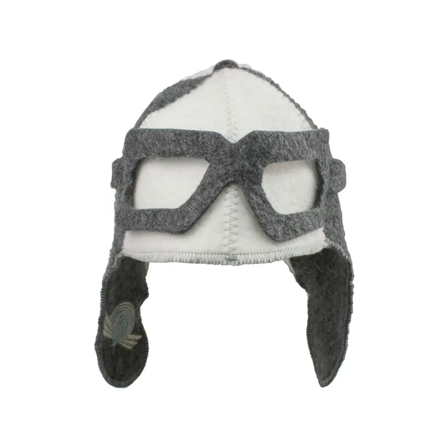 Filtad av en ullblandning (59% ull, 50% geotextil) skyddar den aviator-kepsliknande bastu-/skalhattarna huvudet, öronen och nacken väl från bastuns hetta. Även färgat hår håller sig bra längre när det skyddas i ångbad. På motsvarande sätt kan du sitta i solen längre när du skyddar huvudet från den svala utomhusluften.