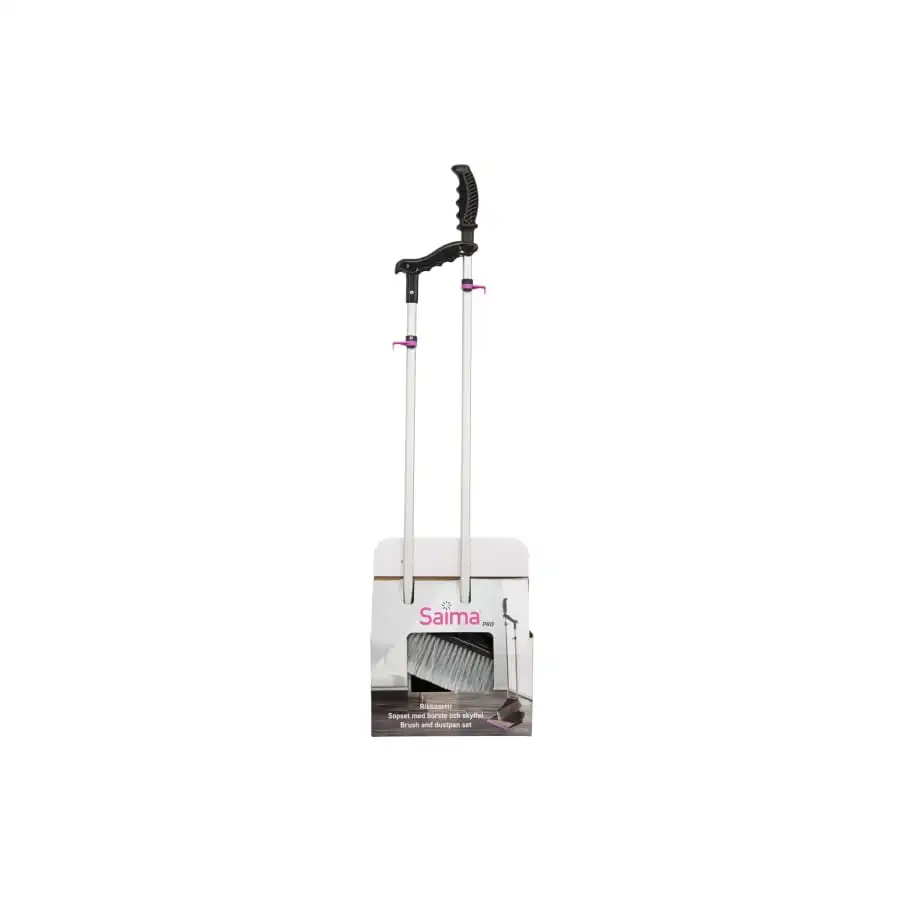 Ergonomic handle with soft grip. Big metal dustpan with brush cleaner, aluminium handle and hook. Brush with excellent bristles and hook. Longer handles so more ergonomical to use.