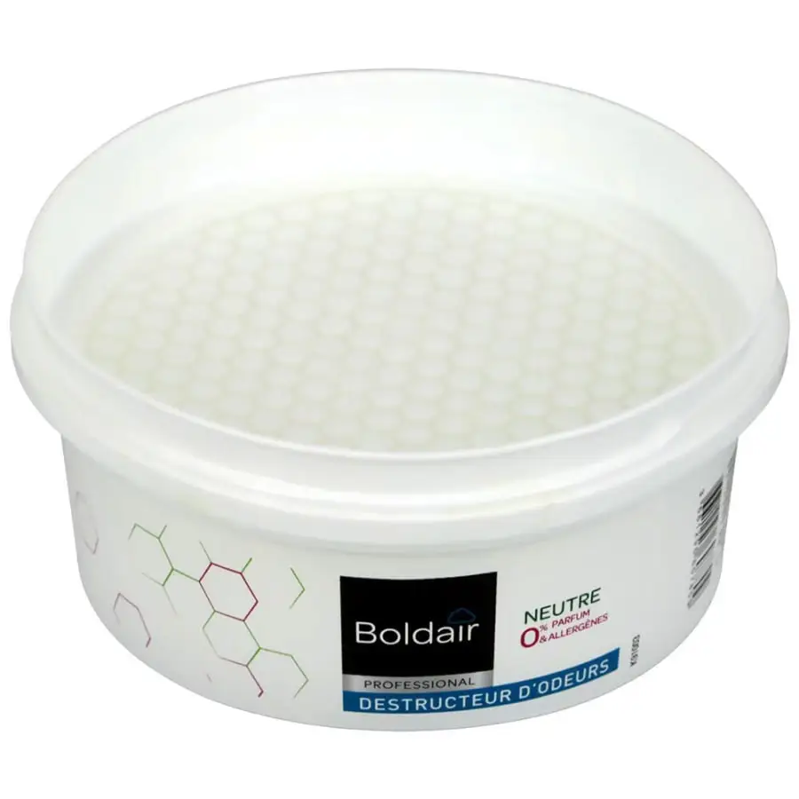Orapi Boldair odor neutralizer with 0 % perfume and allergens. Cage molecules capture bad odors and destroy them. The alliance of perfume and odor destruction technology. The effect of the solid gel lasts up to 8 weeks.
