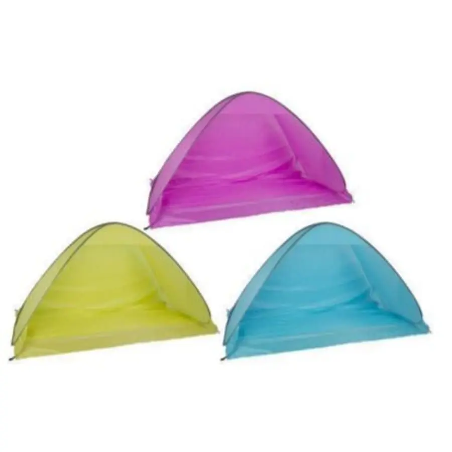 Ett praktiskt och rymligt strandtält som skyddar ditt barn från överdrivna solstrålar. Tältet är perfekt på stranden och på bakgården. Tältet kommer med en förvaringsväska med handtag, som gör det enkelt att bära med sig tältet, samt 4 tältpinnar som du kan fästa tältet med i marken.