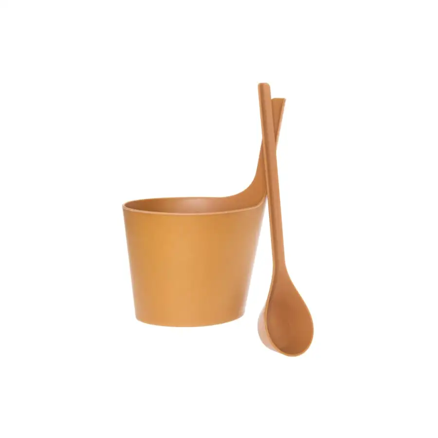 The clean lines and Scandinavian design of the Rento Pisara sauna products are purely the result of Finnish work.The durable natural fibre composite is pleasant to the touch and an excellent choice of material for the heat and humidity of the sauna. DuraSense, from renewable pulp fibres and clean plastic polymers. Recyclable, can be converted into energy by burning. Bucket height 38 cm, diameter 22 cm, 5L. Ladle length 48 cm. The product have been manufactured in Finland.