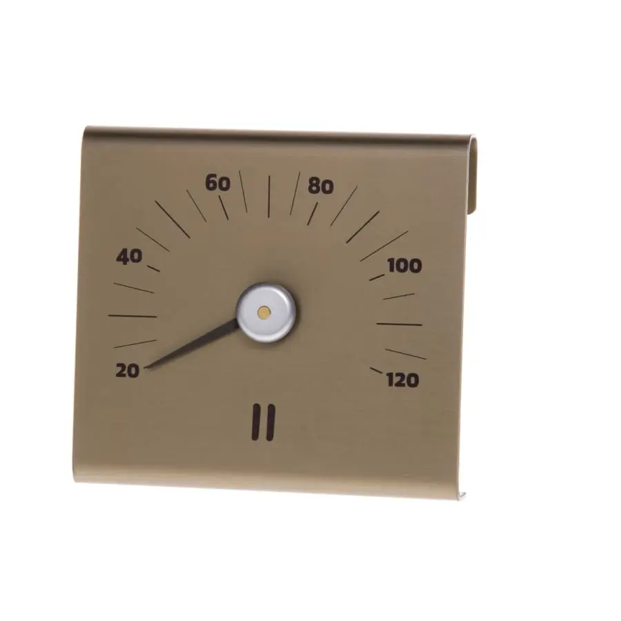 A sauna thermometer is a small but important piece of equipment to ensure a pleasant sauna experience. The stylish design sauna thermometer complements the range of champagne-coloured aluminium products. Temperature is shown in Celsius.