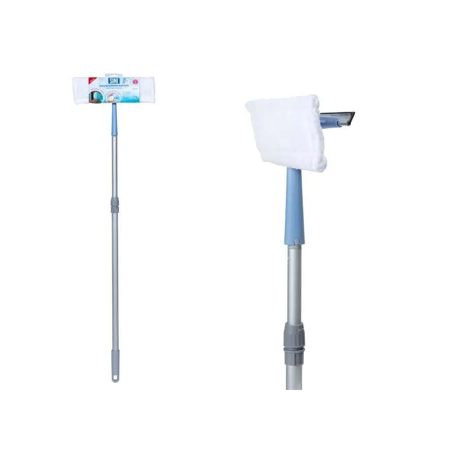 The window washer-dryer is a convenient combination that has an efficiently cleaning window washer and a drying brush in one. The window washer-dryer is suitable for washing all windows and mirrors and also works excellently outdoors, e.g. washing balcony glass. The wide microfiber cover of the washer is easily attached with rubber bands that keep it firmly in place during washing. After use, the cover can be washed clean in the washing machine. The window washer-dryer fits into the SINI handle, so you can conveniently wash the window from higher up without a ladder.