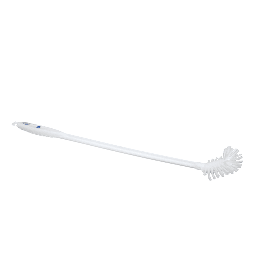 A narrow, long-handled washing brush is suitable for many objects and tasks. Cleaning water tanks of cleaning machines, urinals, floor drains, etc. tasks where reach is a challenge. The hook on the handle is a versatile tool and the brush can be easily hung to dry. The brush material is polyester with good chemical resistance. The brush can be cleaned in dehu. The heat resistance of the brush materials is 130°C.