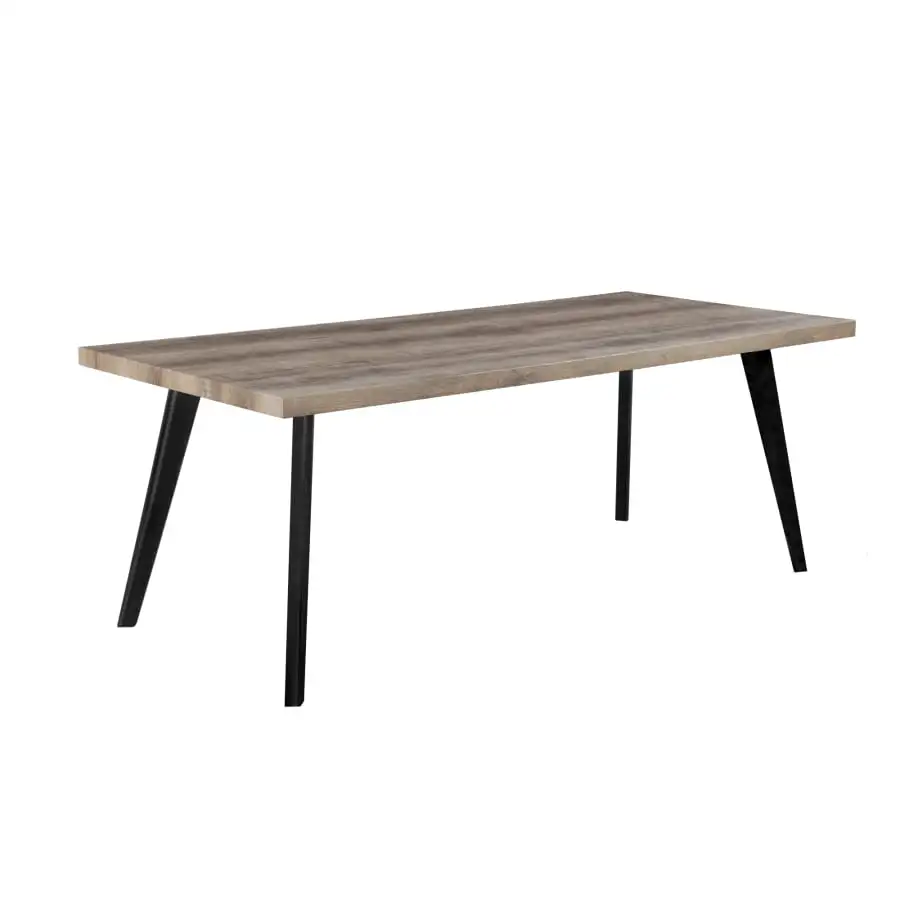 Pöytä tarjoaa runsaasti tilaa ruokailijoille ja sen jämäkkä runko takaa vakaan ja turvallisen pöydän käytön. Mustat metallijalat lisäävät pöydän tukevuutta ja antavat sille modernin ja hienostuneen ilmeen.