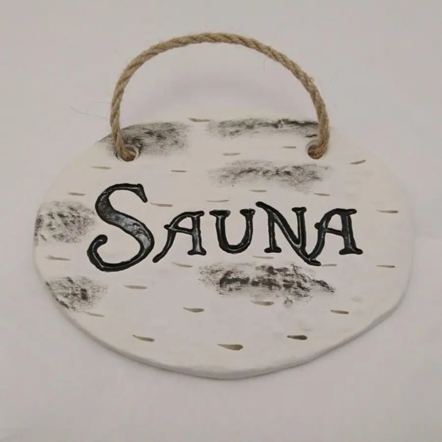 Ceramic oval-shaped Sauna sign. Dimensions 14.5 x 10.5 cm.