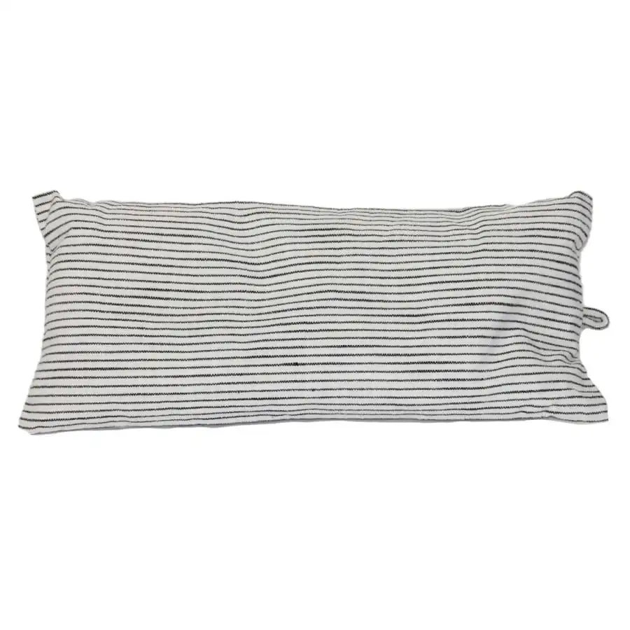 Sauna pillow for relaxing moments in the sauna. Thin stripes in light fabric. Cover 100% cotton, Velcro fastening. Hand wash, Washing instructions in the product. Pillow interior with thermocol balls.